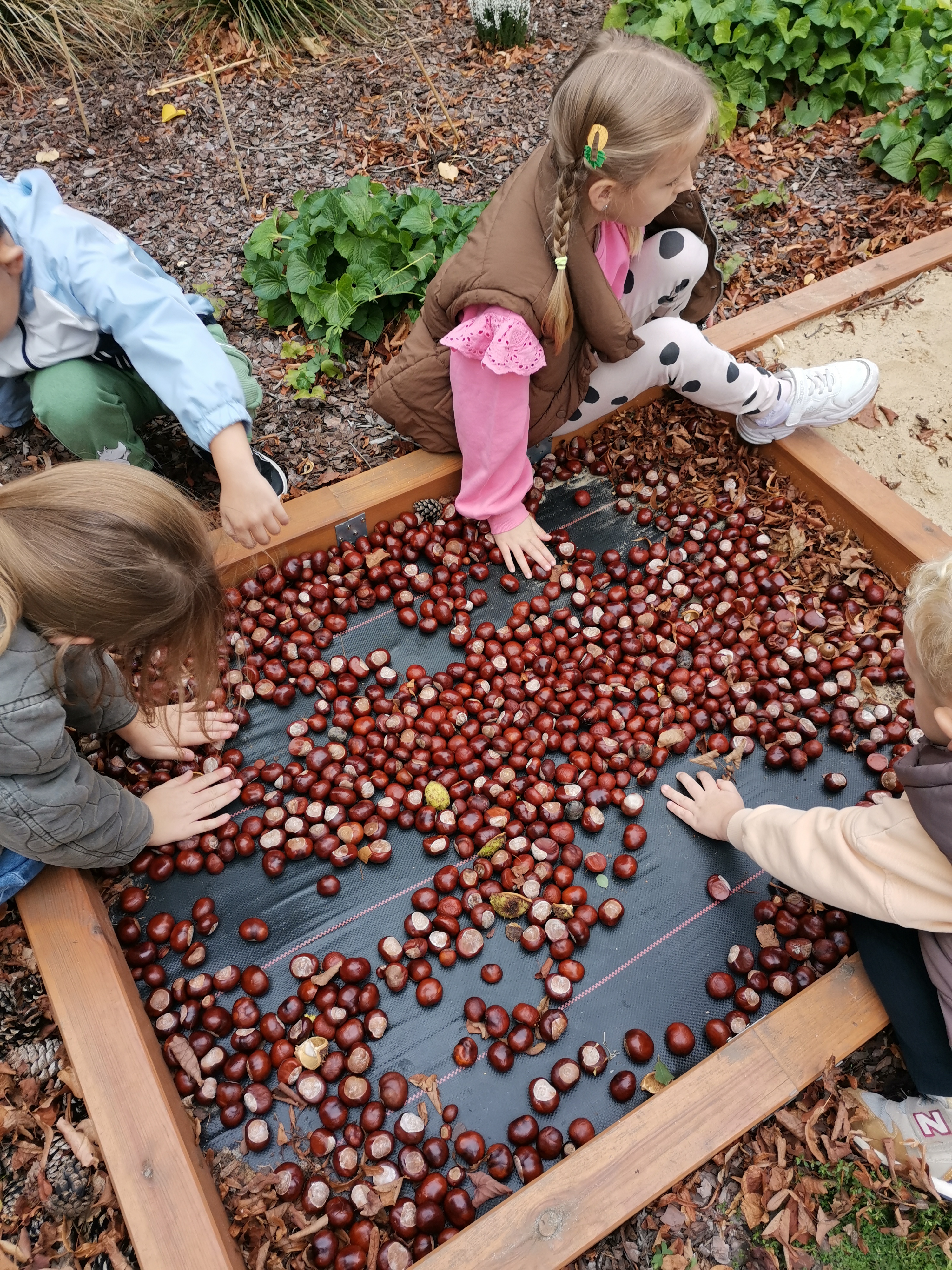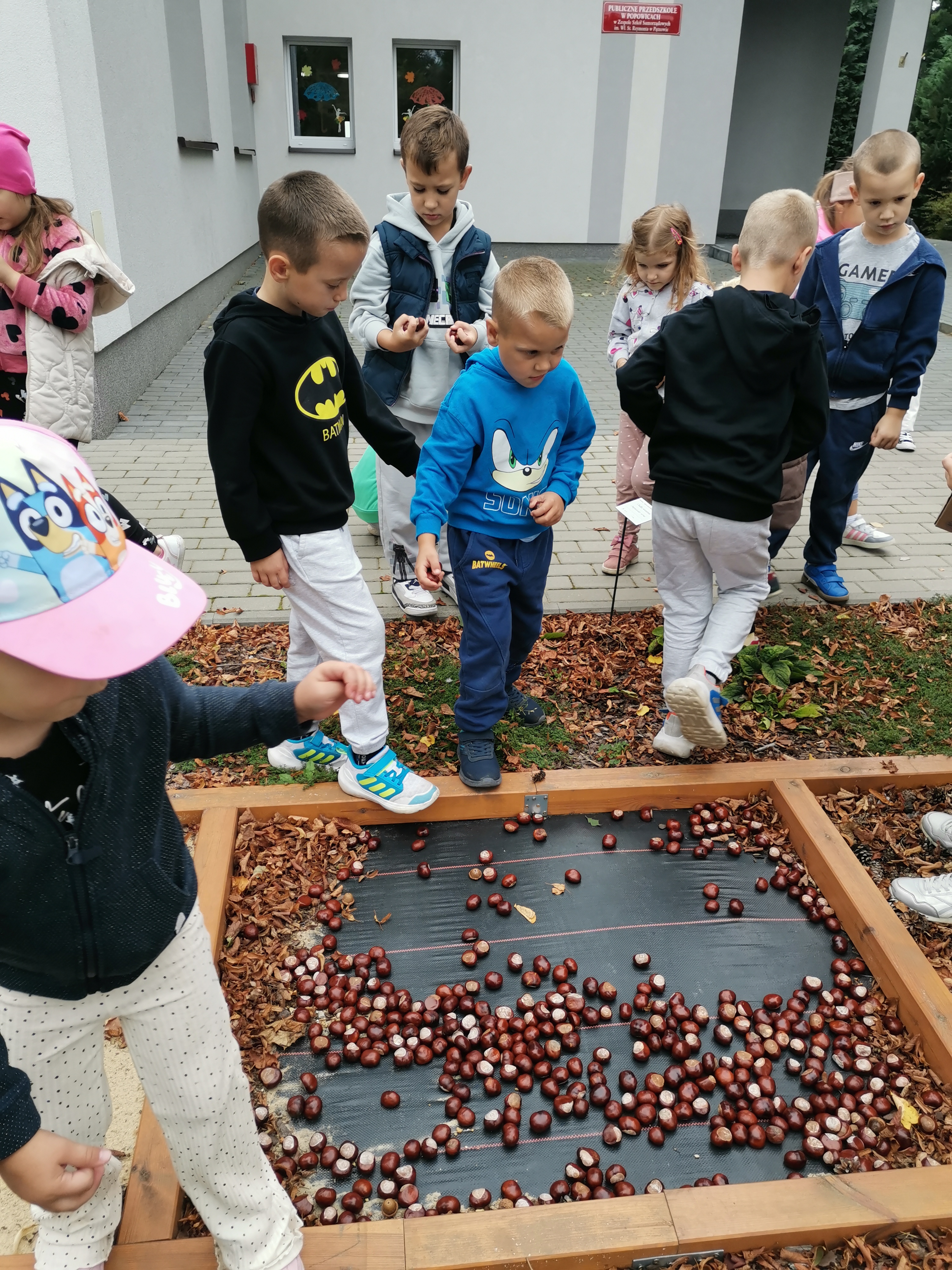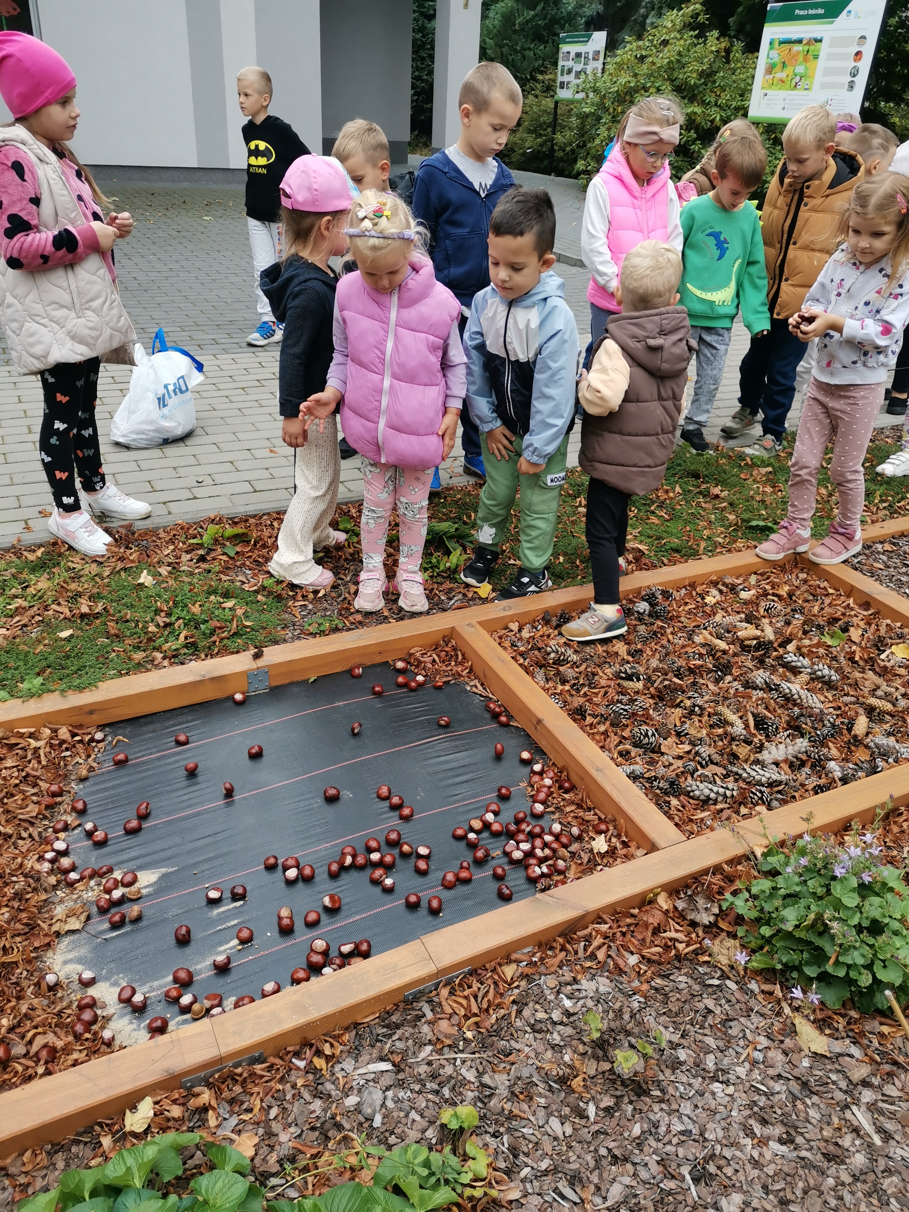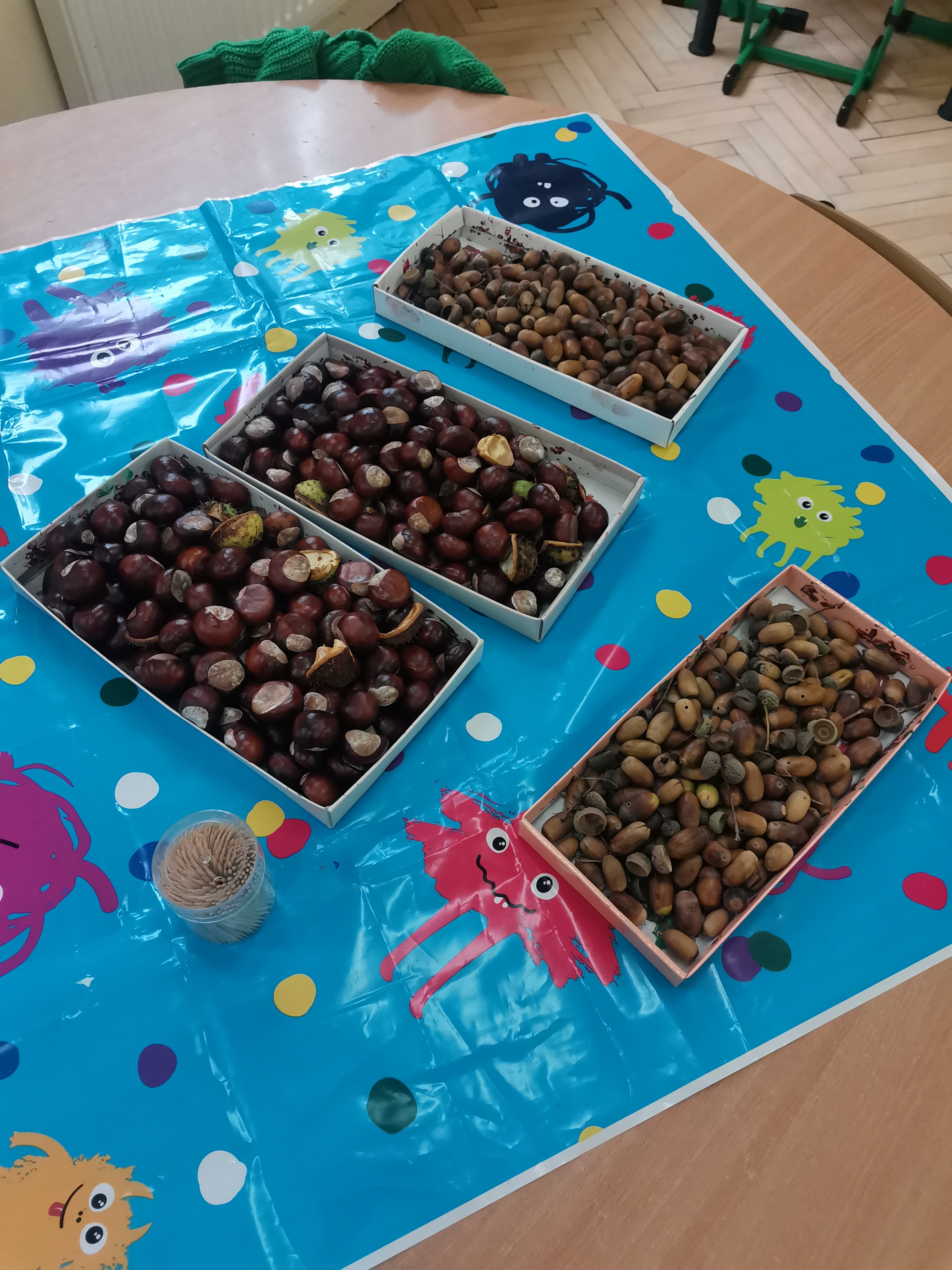 Zebrane kasztany i żołędzie posłużyły również do uzupełnienia scieżki sensorycznej w naszej pracowni.
