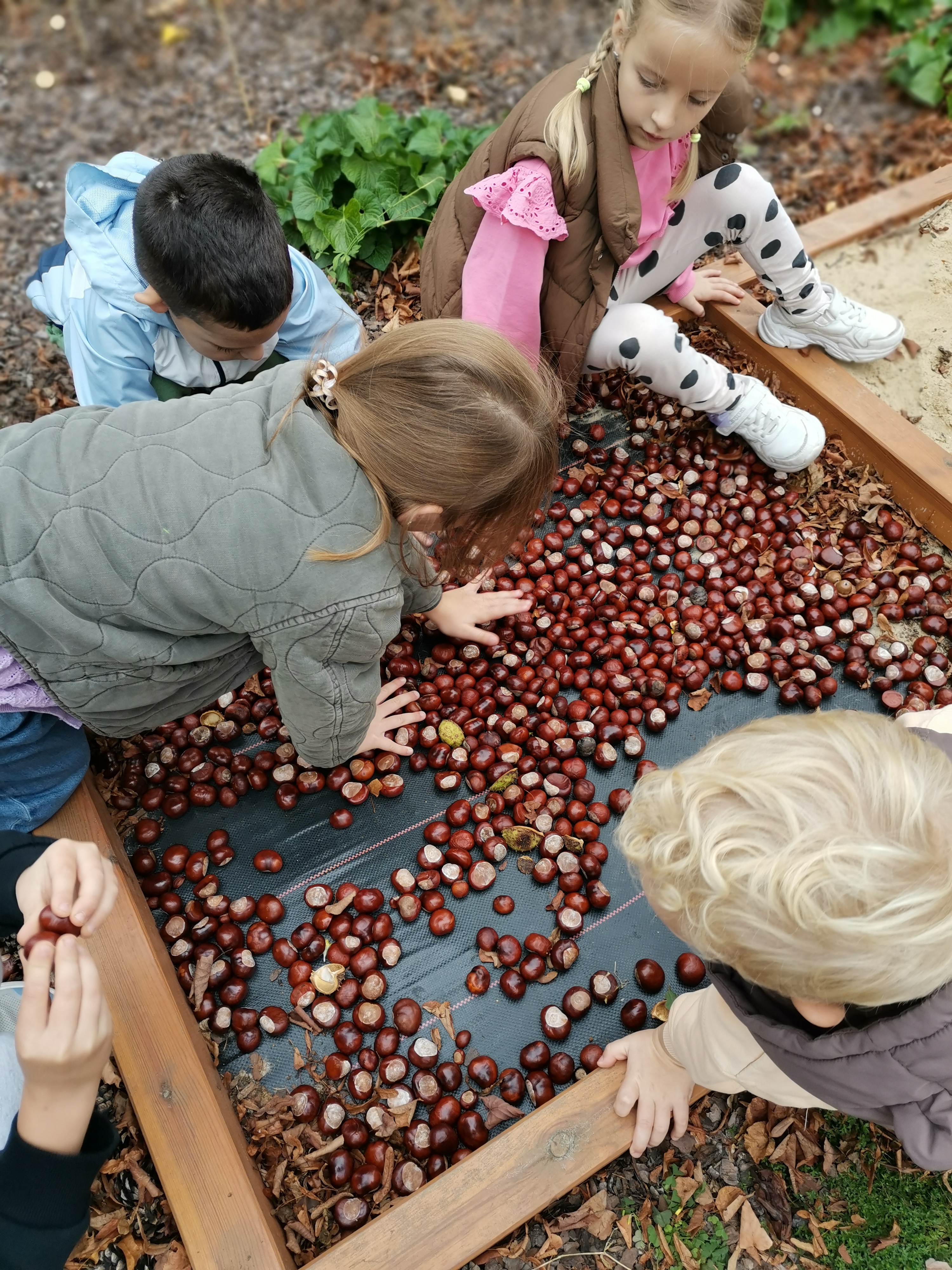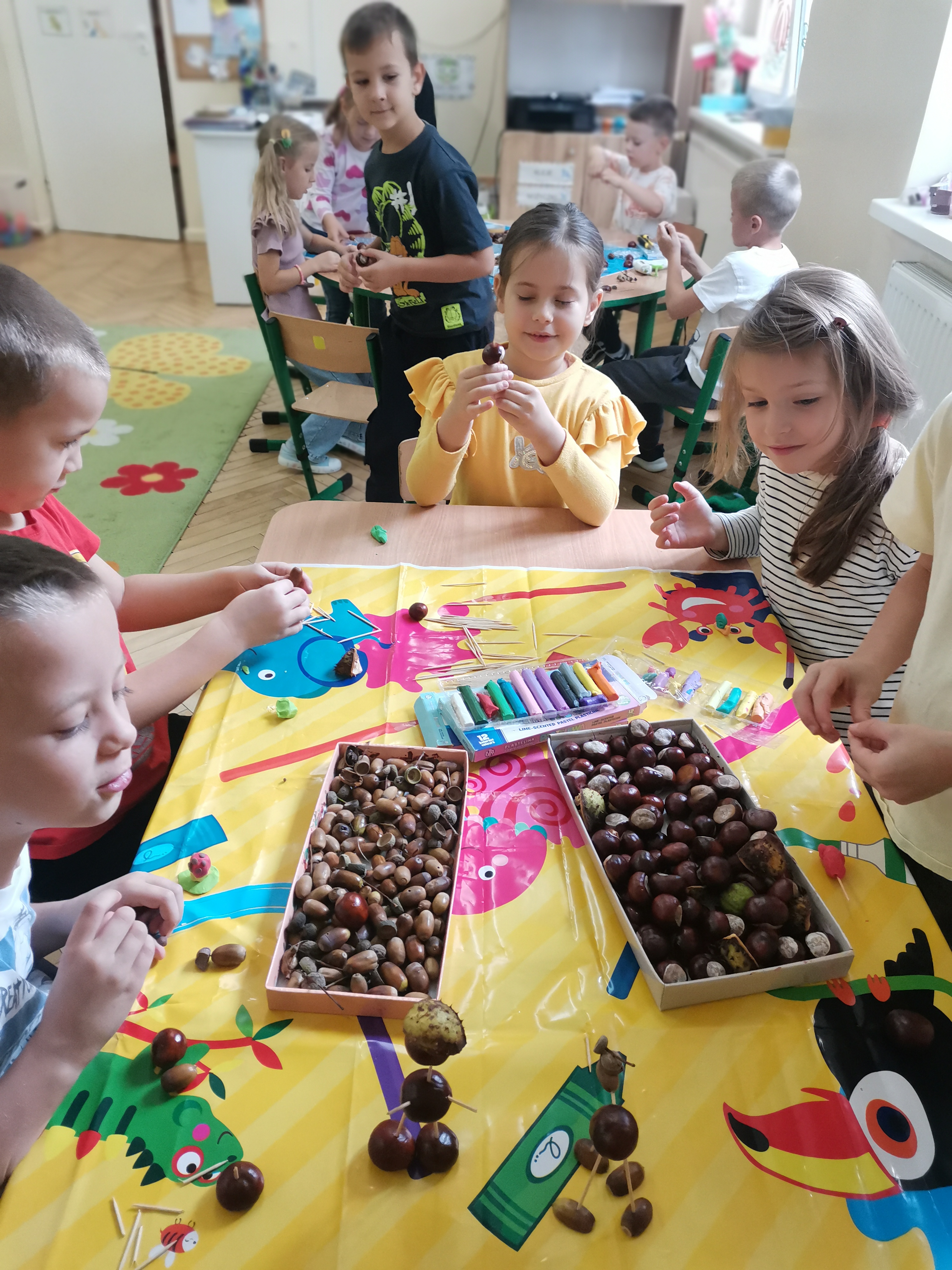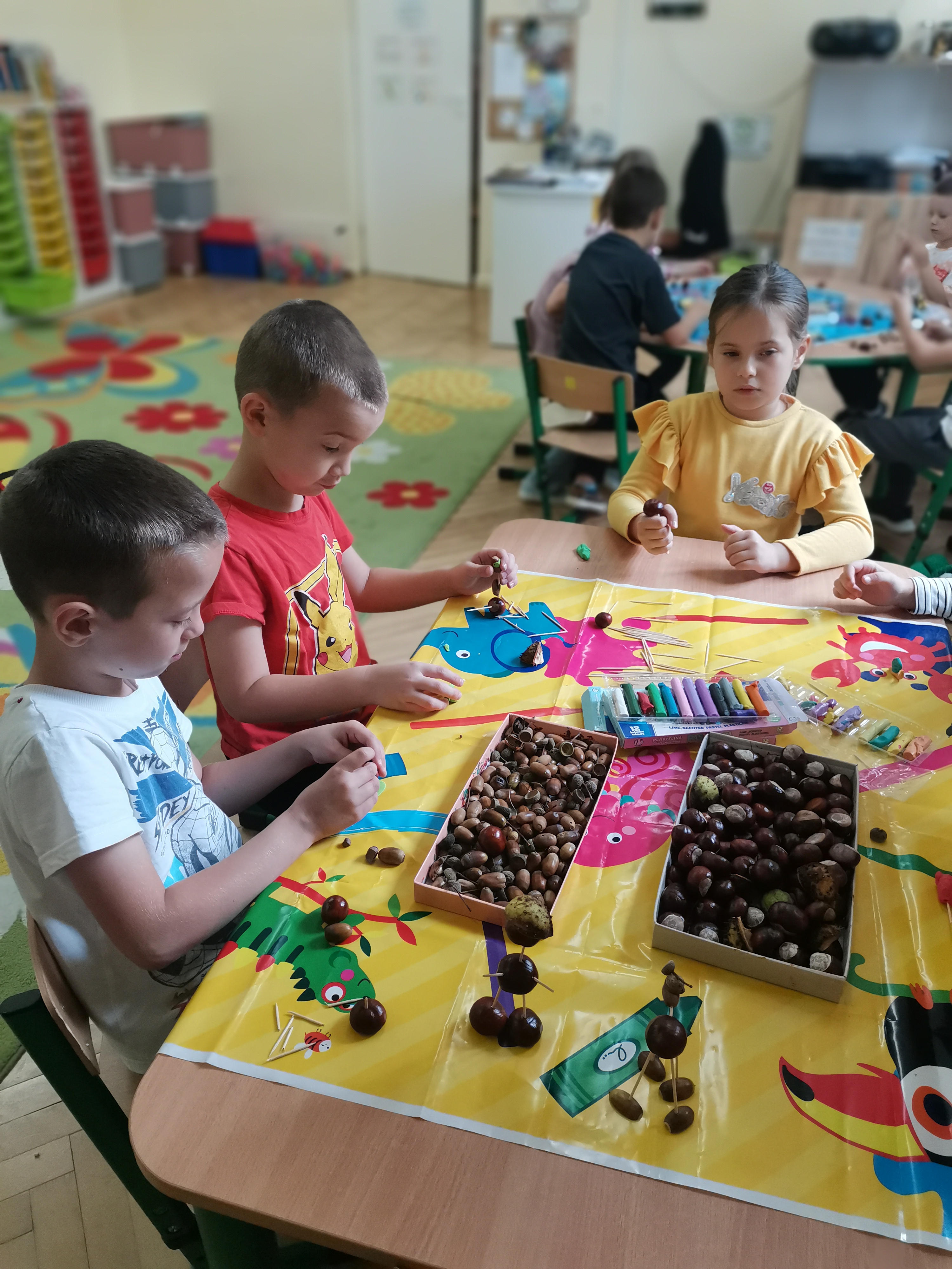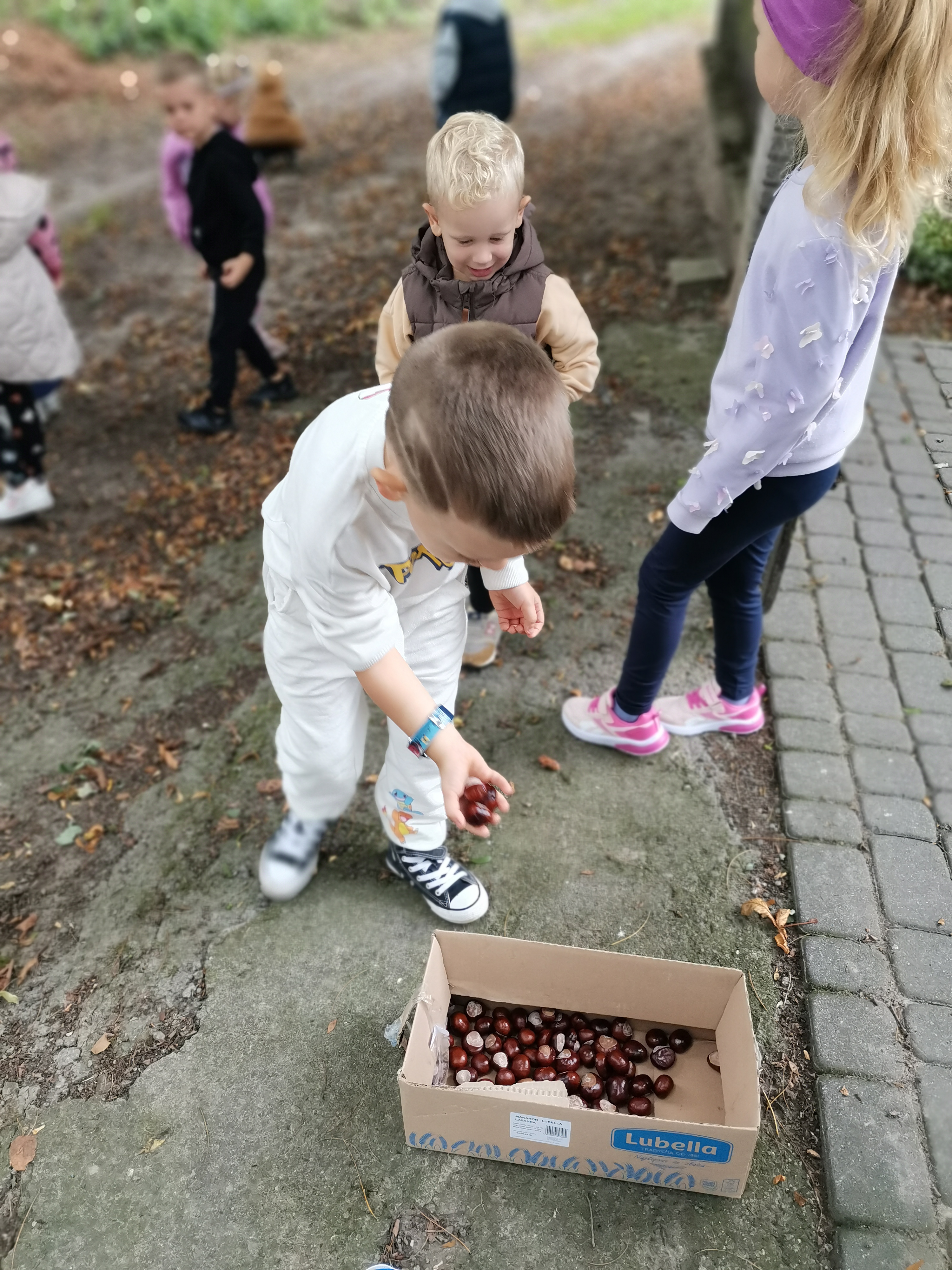 Zebrane kasztany i żołędzie posłużyły również do uzupełnienia scieżki sensorycznej w naszej pracowni.