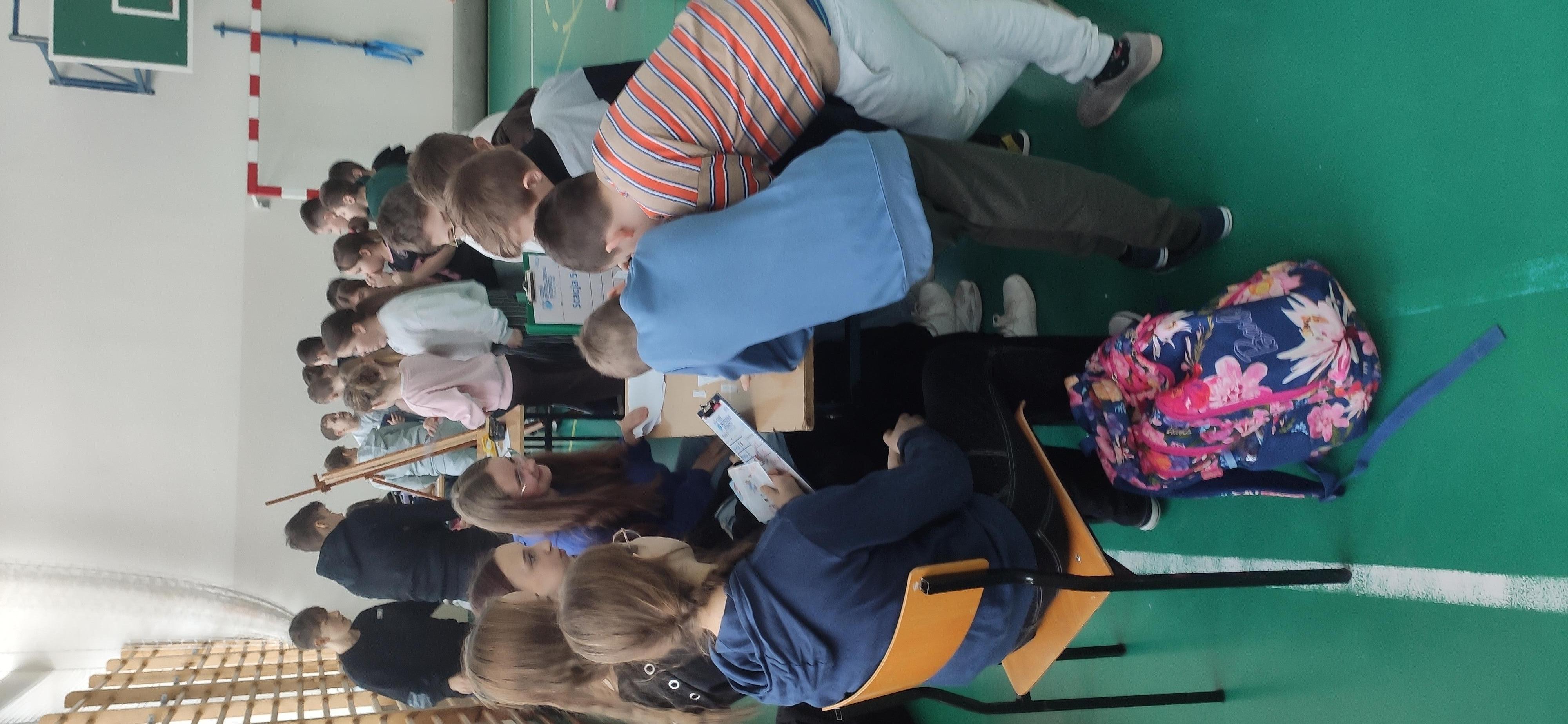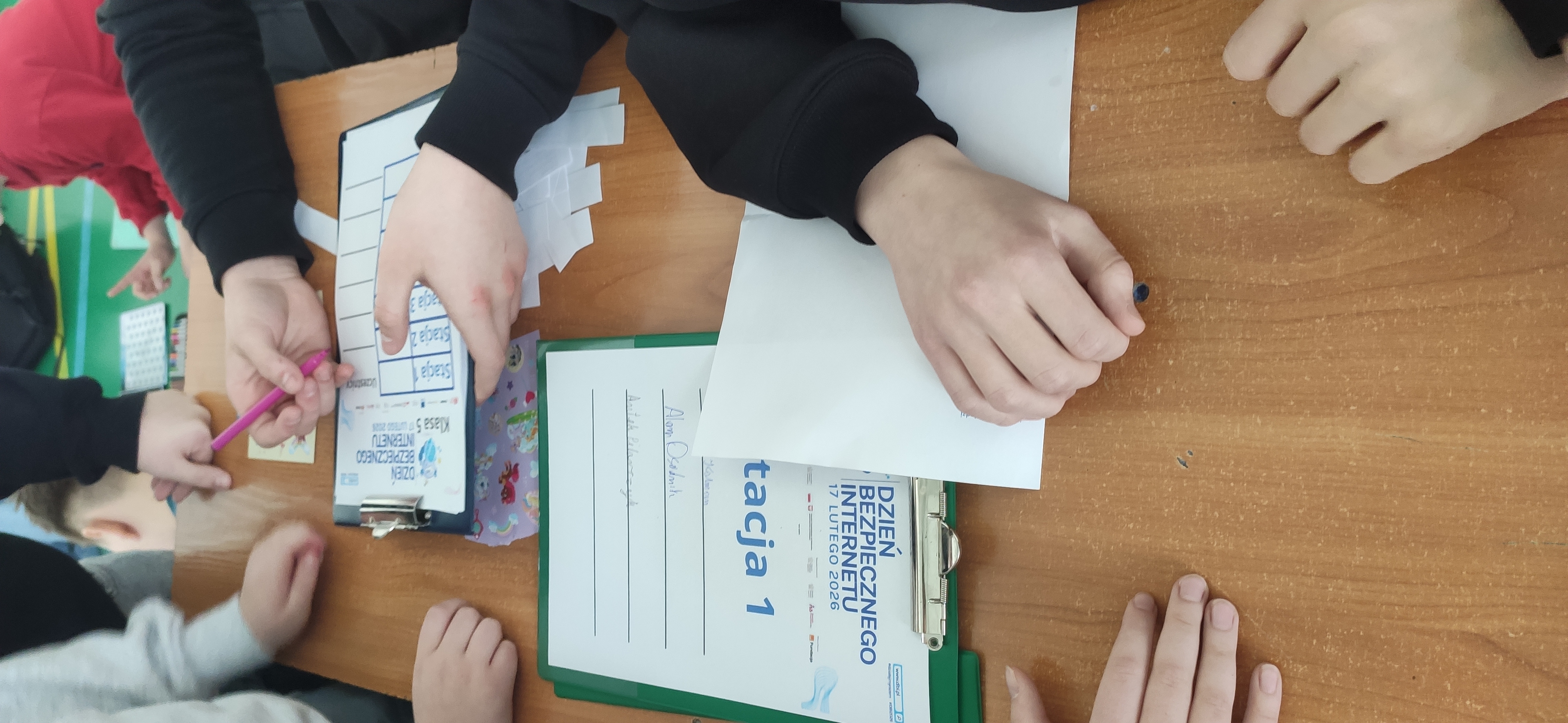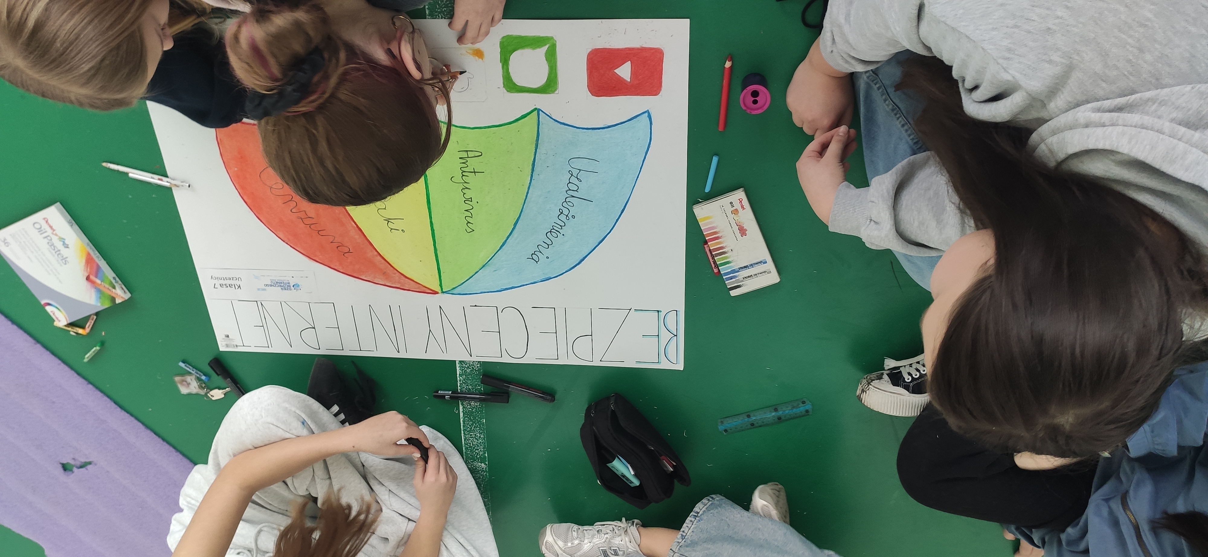 Uczymy się najchętniej w formie zabawy z elementami rywalizacji. Pamiętając o tej zasadzie uczniowie klasy 8 przygotowali dla klas IV - VII stacje zadaniowe o tematyce bezpieczenstwa w internecie. Uczniowie podzieleni na grupy zdobywali punkty ucząc się mimochodem. Podczas akcji powstaly również wysokiej jakości plakaty, ktore można podziwiać na korytarzu naszej szkoły.