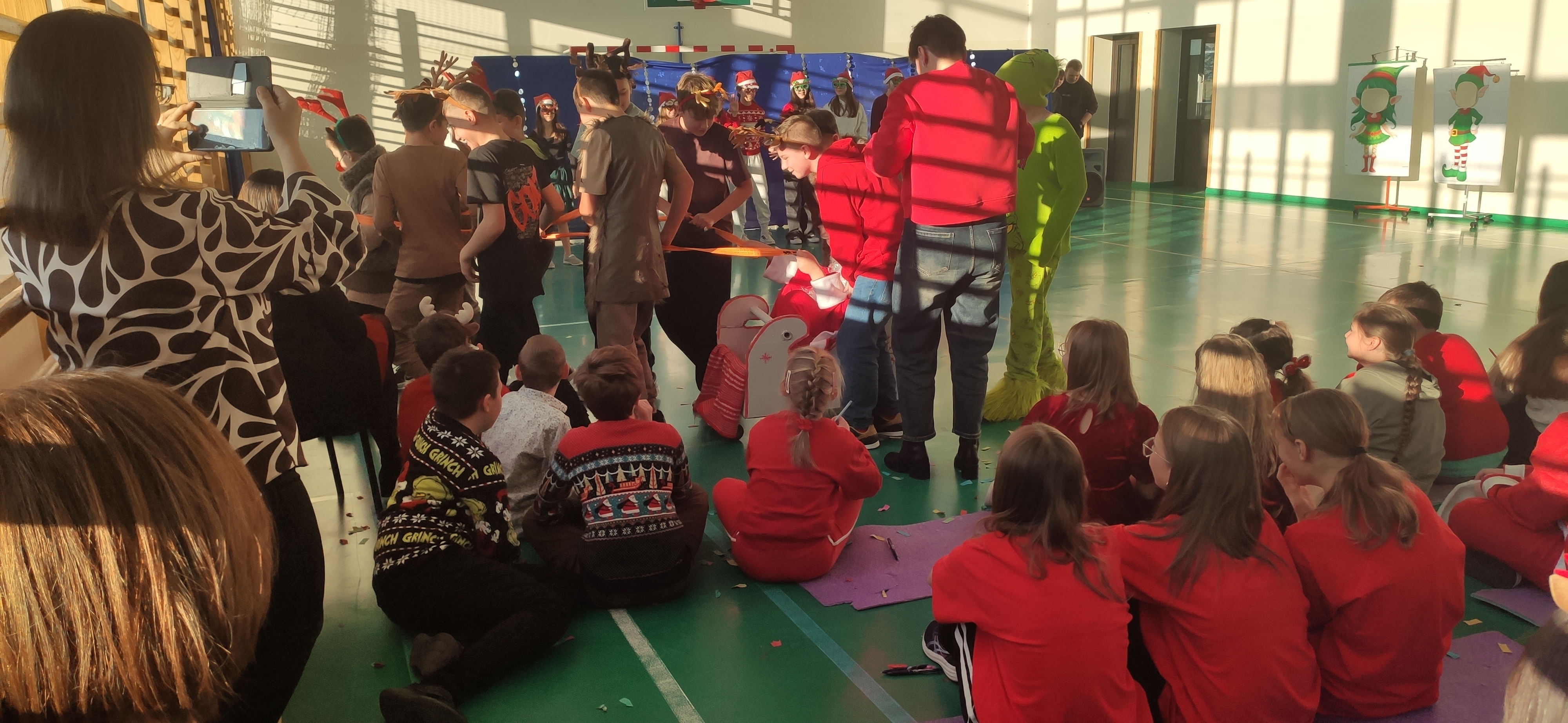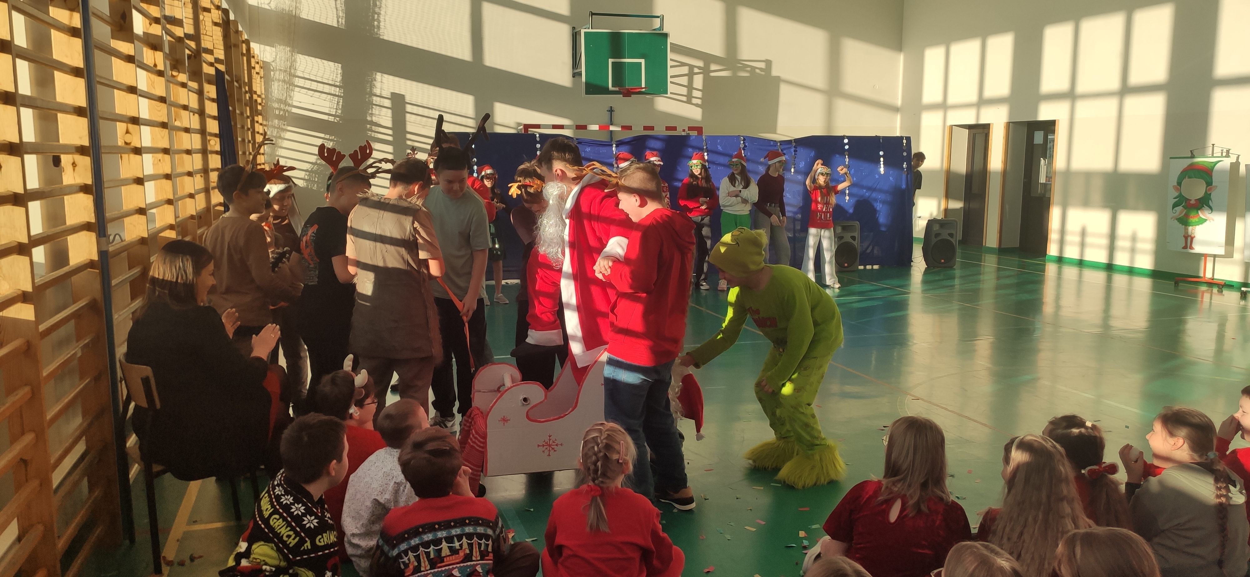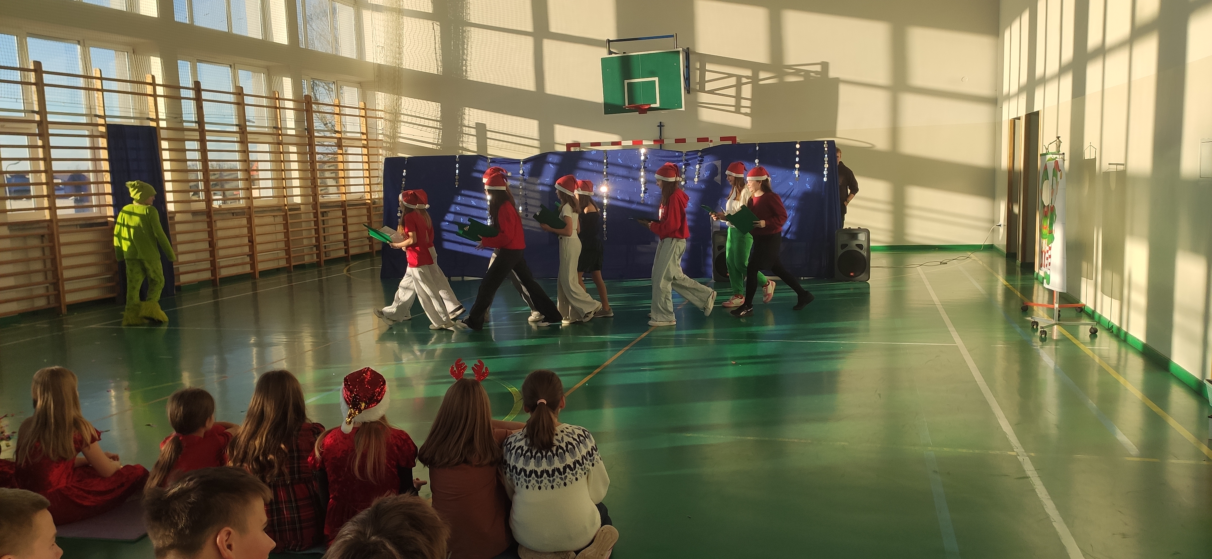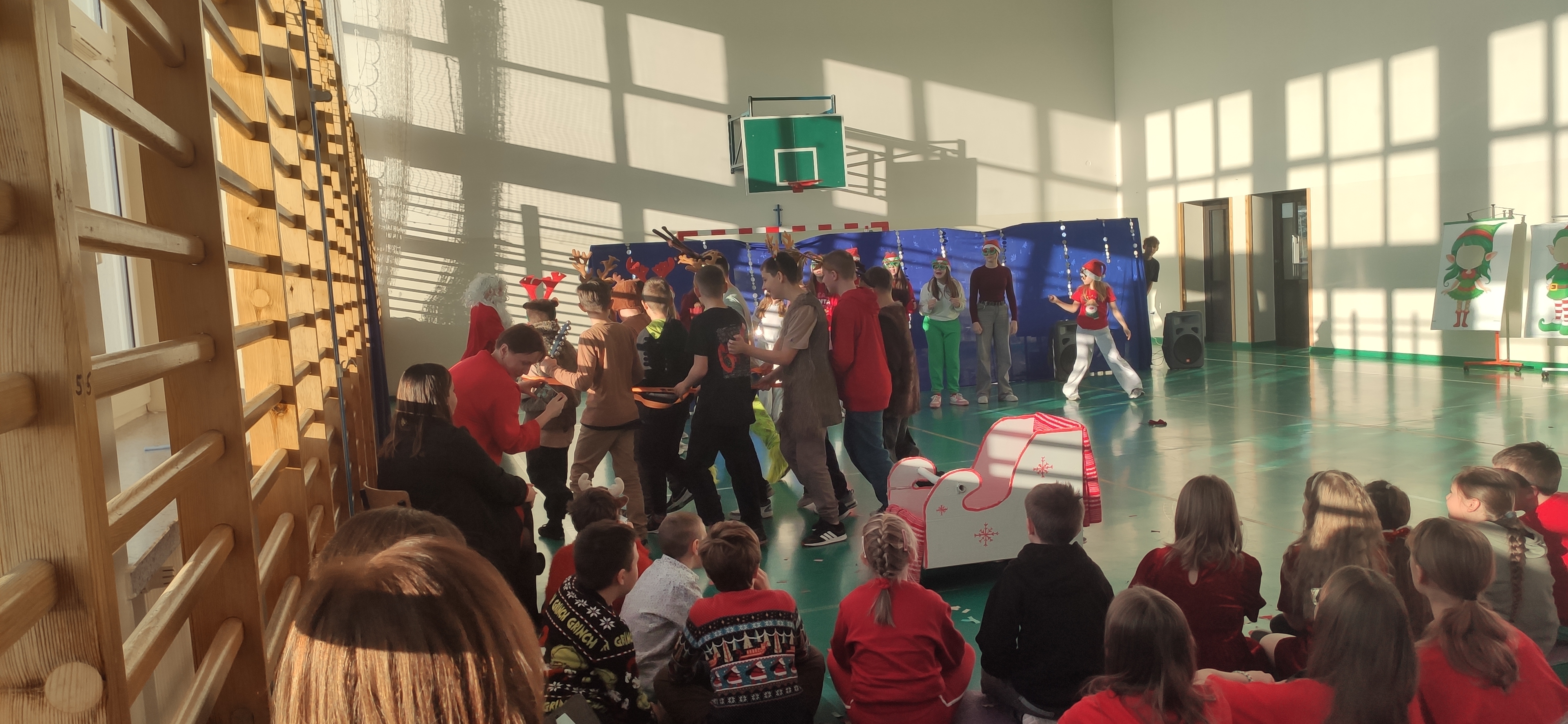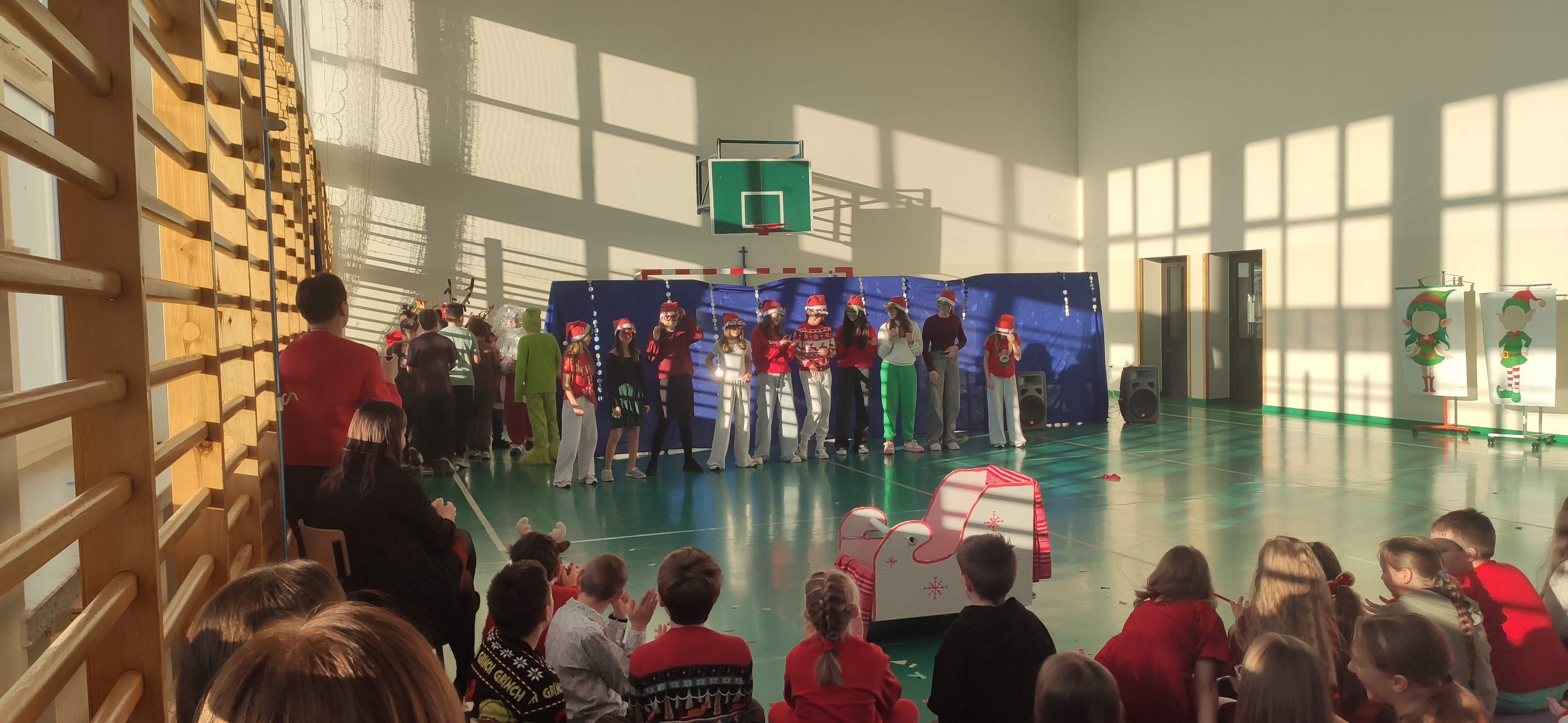 19 grudnia na sali gimnastycznej odbyła się prezentacja świątecznych teledysków w wykonaniu klas IV - VIII. Pomimo początkowych trudności uczniowie pod kierunkiem wychowawców przygotowali wspaniały repertuar. Dzięki współpracy z Radą Rodziców każda klasa otrzymała bon pieniężny do wykorzystania na cele klasowe.