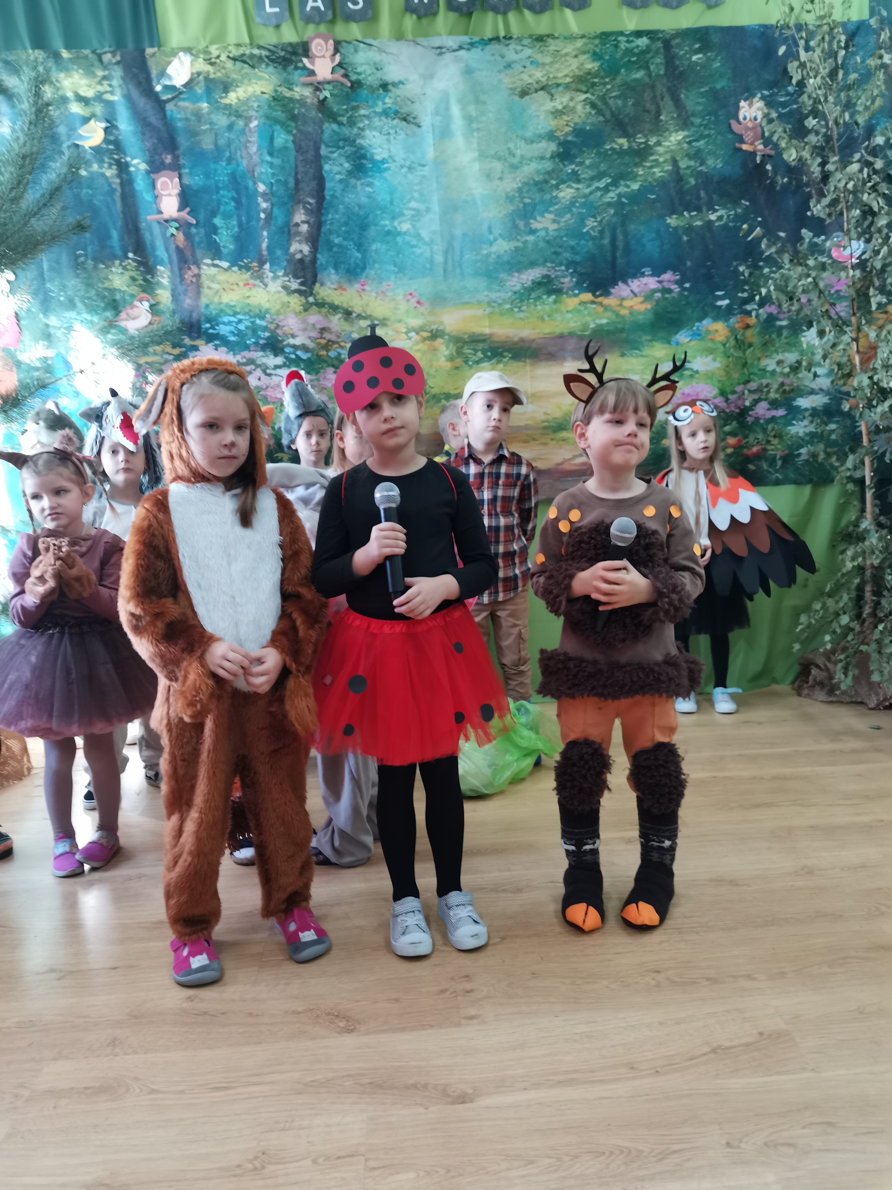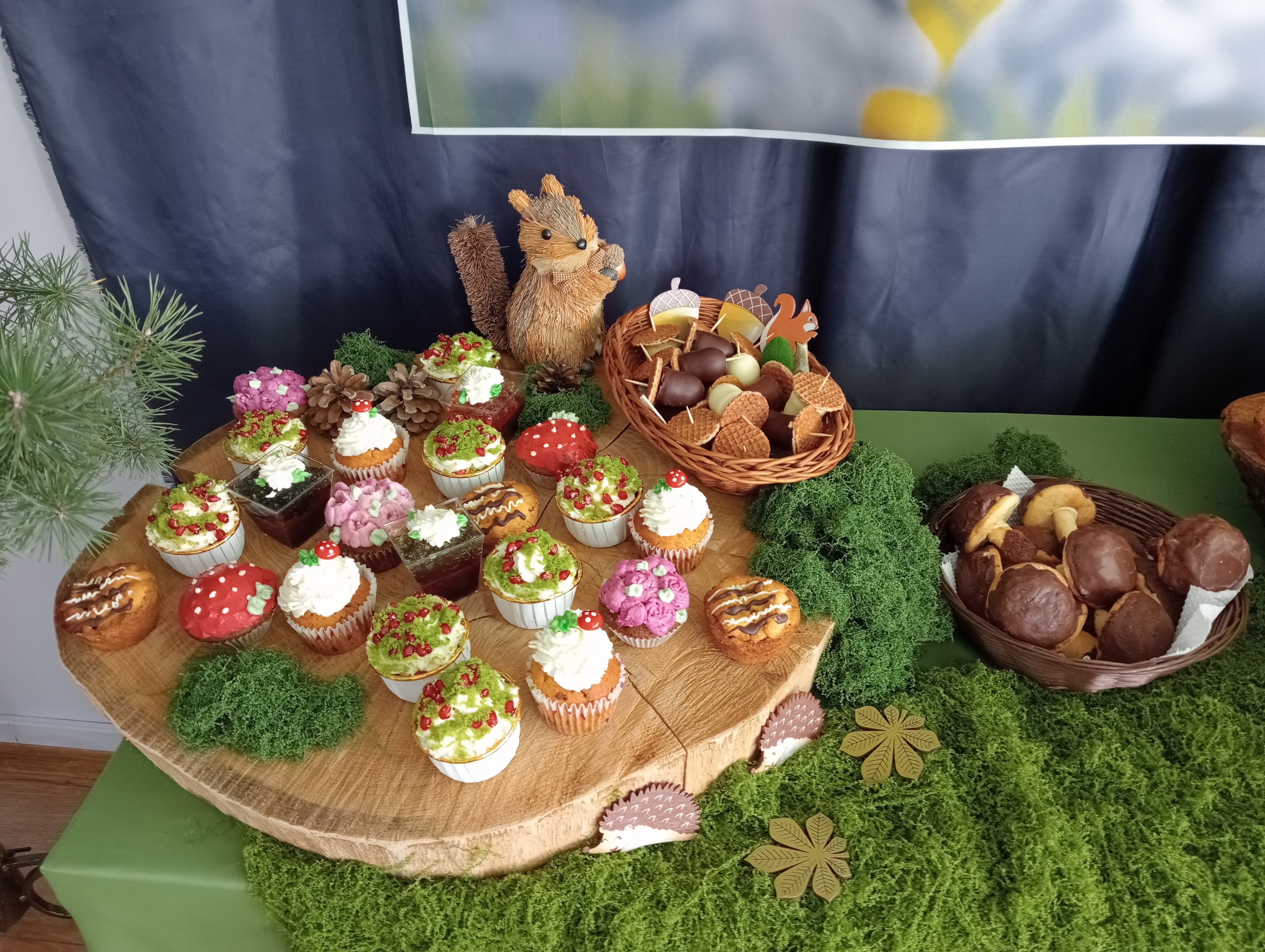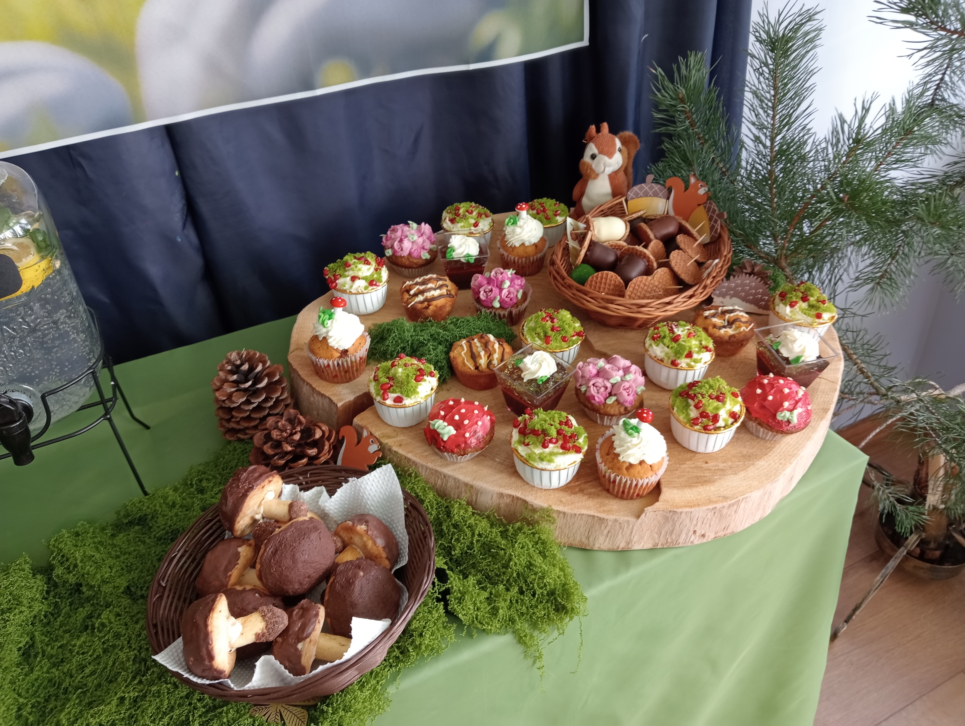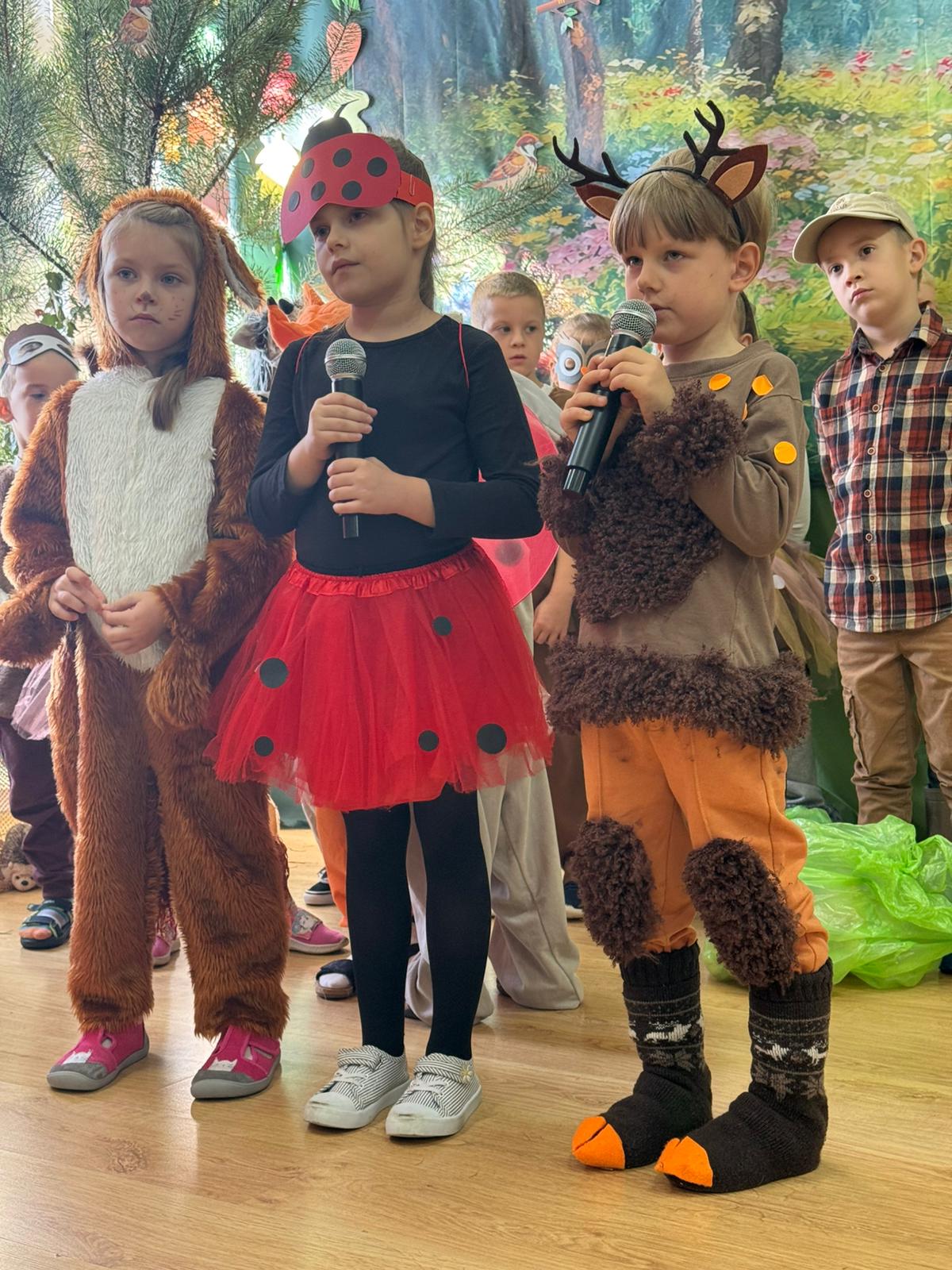 Impreza rozpoczęła się od uroczystego przecięcia wstęgi na terenie eko-pracowni. Następnie goście udali się na występy w wykonaniu naszych przedszkolaków, które zaprezentowały się w pouczającej bajce o tematyce przyrodniczo-ekologicznej pt."Przygody w Stumilowym lesie". Dzieci otrzymały mnóstwo pochwał oraz braw, po czym zaprosiły wszystkich na słodki leśny poczęstunek przygotowany przez rodziców.