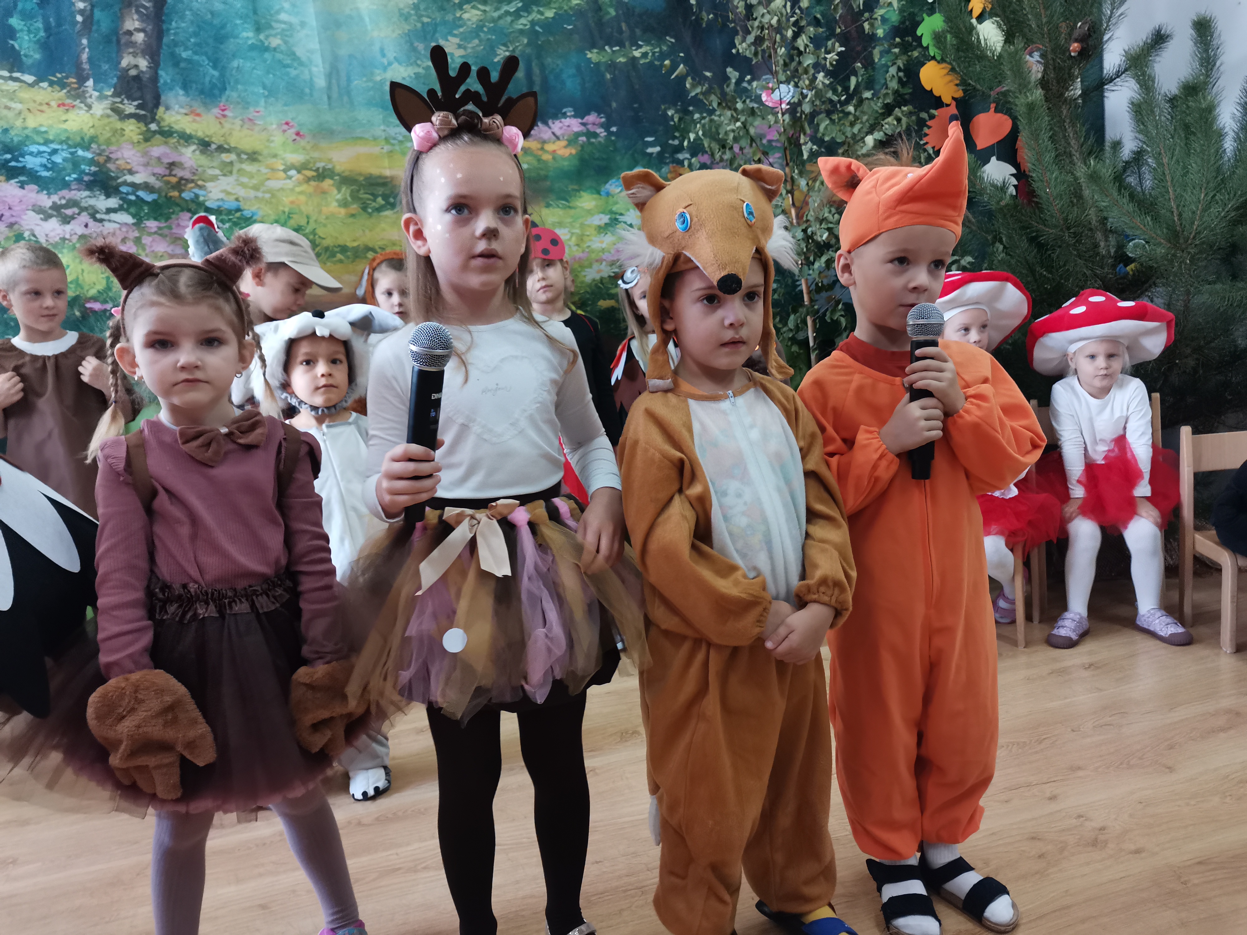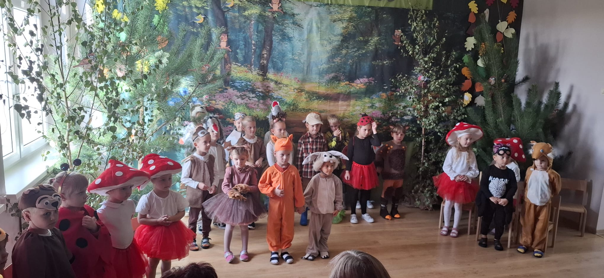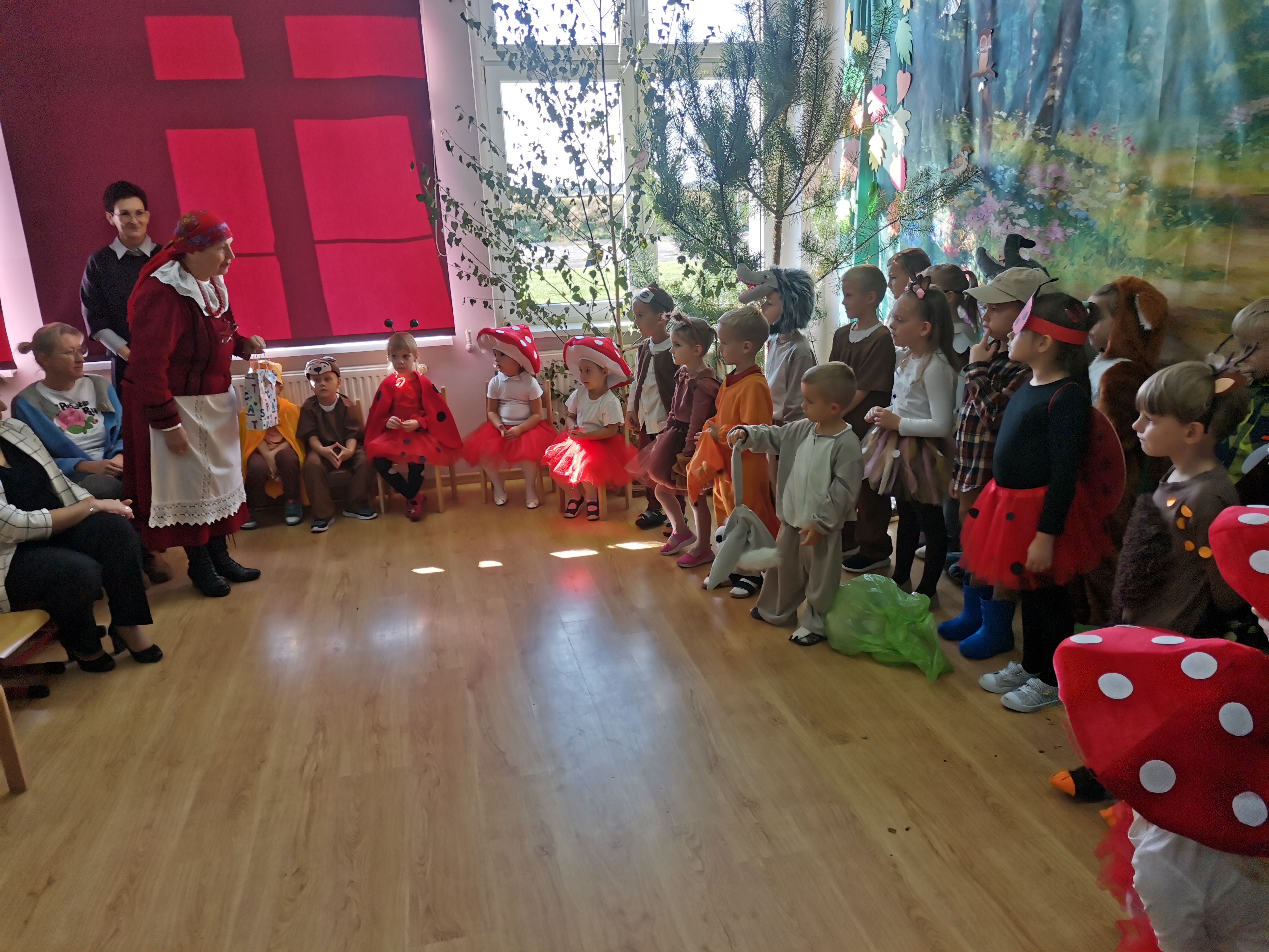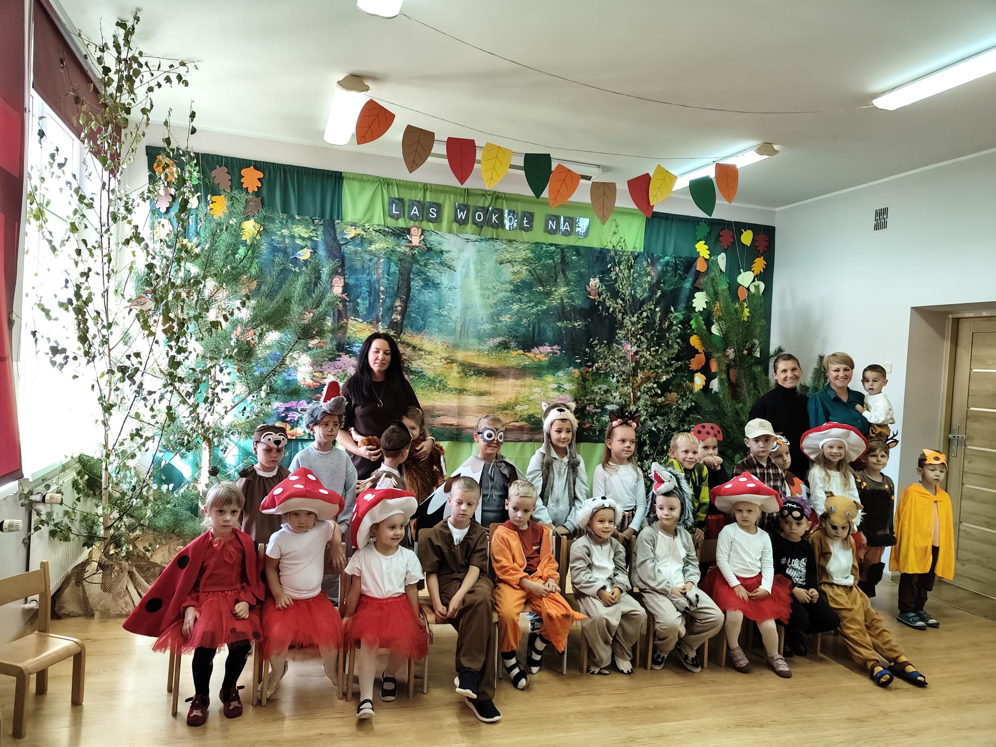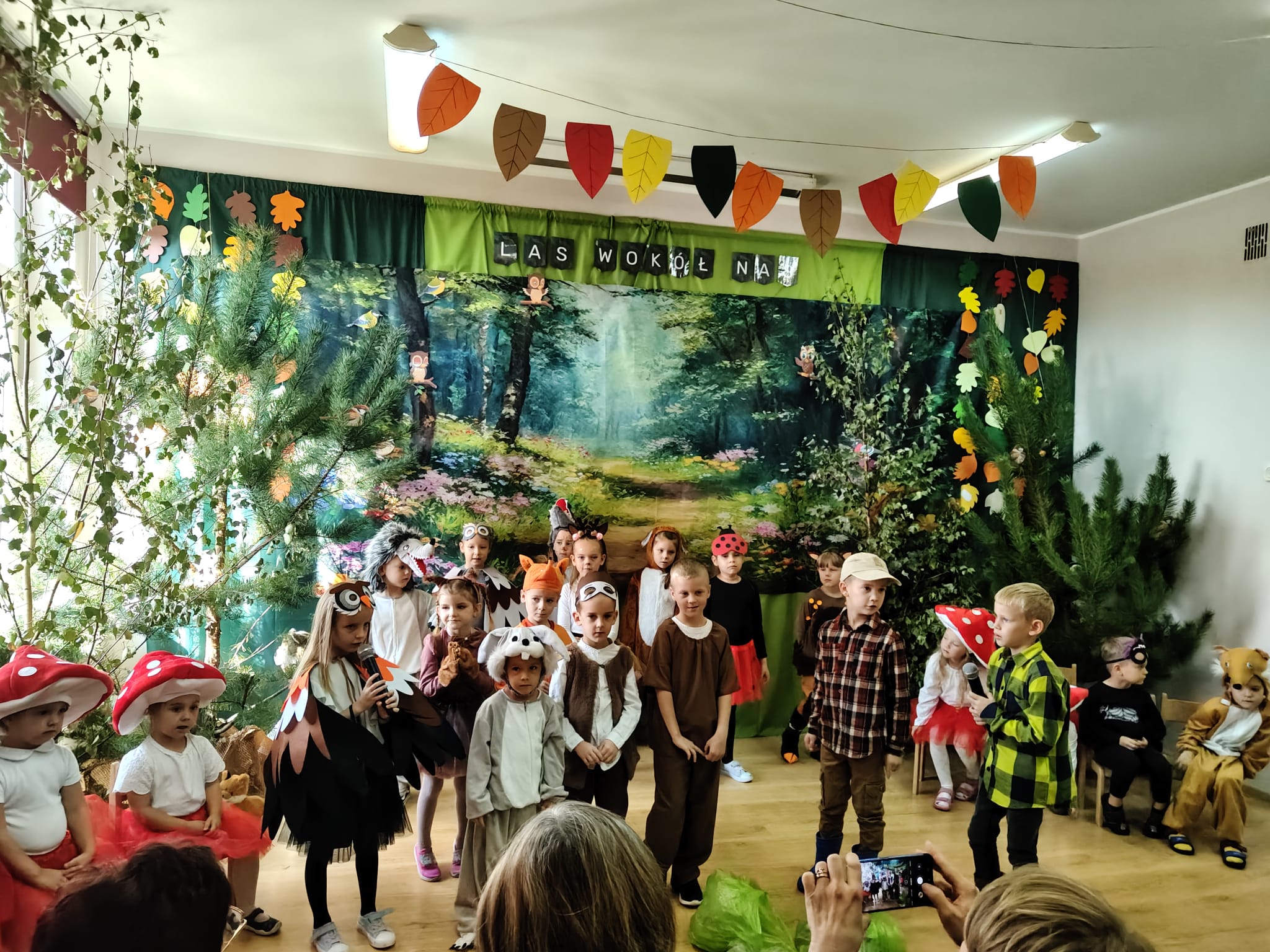 Impreza rozpoczęła się od uroczystego przecięcia wstęgi na terenie eko-pracowni. Następnie goście udali się na występy w wykonaniu naszych przedszkolaków, które zaprezentowały się w pouczającej bajce o tematyce przyrodniczo-ekologicznej pt."Przygody w Stumilowym lesie". Dzieci otrzymały mnóstwo pochwał oraz braw, po czym zaprosiły wszystkich na słodki leśny poczęstunek przygotowany przez rodziców.