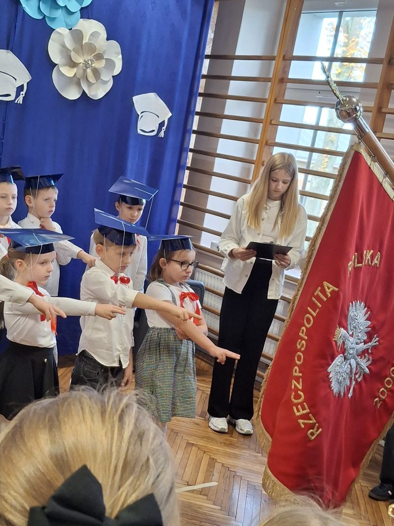 21 października 2025 r. odbyła się w naszej szkole uroczystość pasowania na ucznia. Jest to szczególny dzień, który na długo pozostanie w pamięci każdego ucznia klasy pierwszej. W tym dniu dzieci oficjalnie przyjęte zostały do grona uczniów szkoły. Podczas uroczystości pierwszoklasiści pokazali, że potrafią pięknie śpiewać i recytować wiersze. Towarzyszyli im goście – Wójt Gminy Patnów, Dyrekcja szkoły, Rodzice oraz uczniowie klasy II i III z Wychowawcami. Najważniejszą częścią uroczystości, na którą wszyscy czekali, było ślubowanie oraz pasowanie. Pierwszaki głośno i z przekonaniem przyrzekały być dobrymi i pilnymi uczniami oraz rzetelnie wypełniać swoje obowiązki, o czym przypominać im będą otrzymane dyplomy. Dodatkowo ten piękny dzień obfitował w niespodzianki. Byly to prezenty otrzymane od Wójta, słodkie upominki od Rodziców, prezenty od klasy II i III oraz prezent – niespodzianka dla całej klasy ufundowany przez Radę Rodziców.